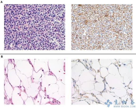 10例患者,包括現(xiàn)在所述的這例患者,到目前為止都已經(jīng)接受了治療(詳見附錄中表S1,NEJM.org)。10例中6例仍保持疾病無進(jìn)展。僅有1例患者出現(xiàn)了CTL019相關(guān)性1級(jí)細(xì)胞因子釋放綜合征,1例因自體移植物抗宿主反應(yīng)引發(fā)的3級(jí)小腸結(jié)腸炎。